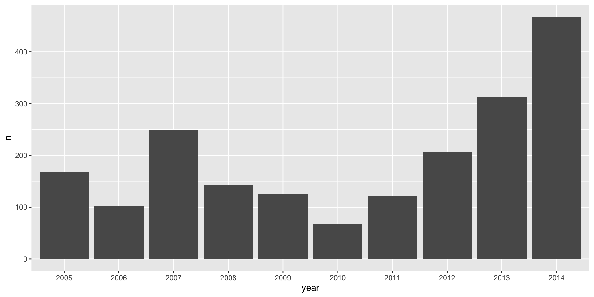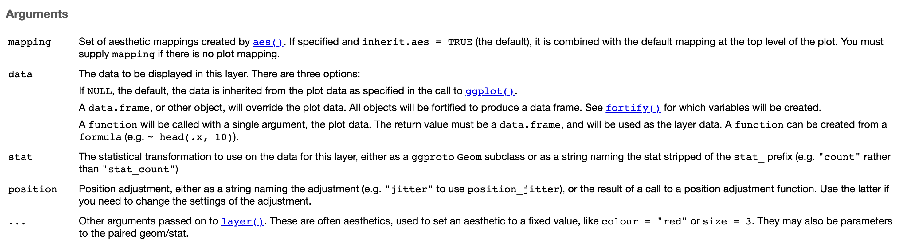 Instead of the %>%, in ggplot we connect pieces of code with +