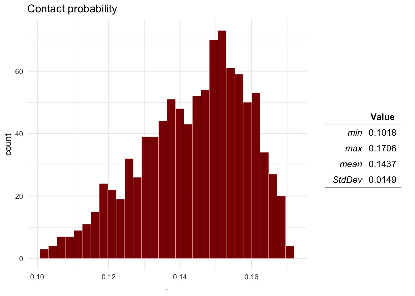 ra_plotDist(Mo$O1, main = 'Contact probability') # Contact