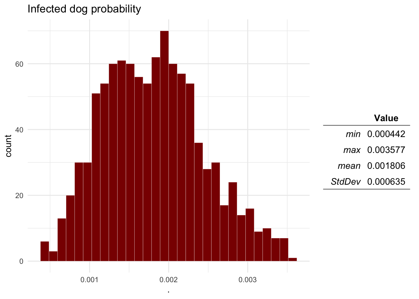 ra_plotDist(Mo$O3, main = 'Infected dog probability') # Infected