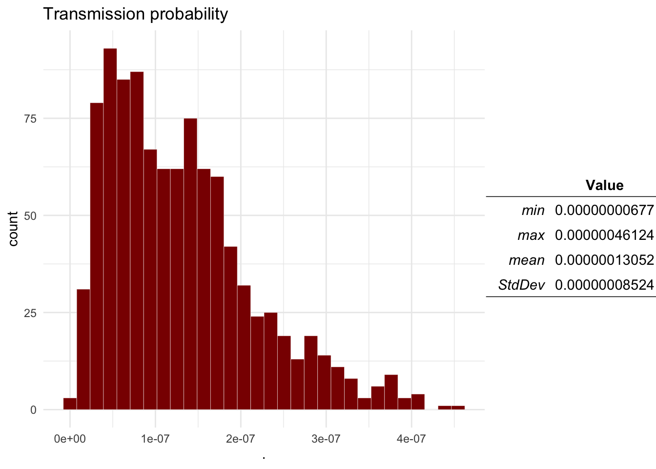 ra_plotDist(Mo$O4, main = 'Transmission probability') # Transmission