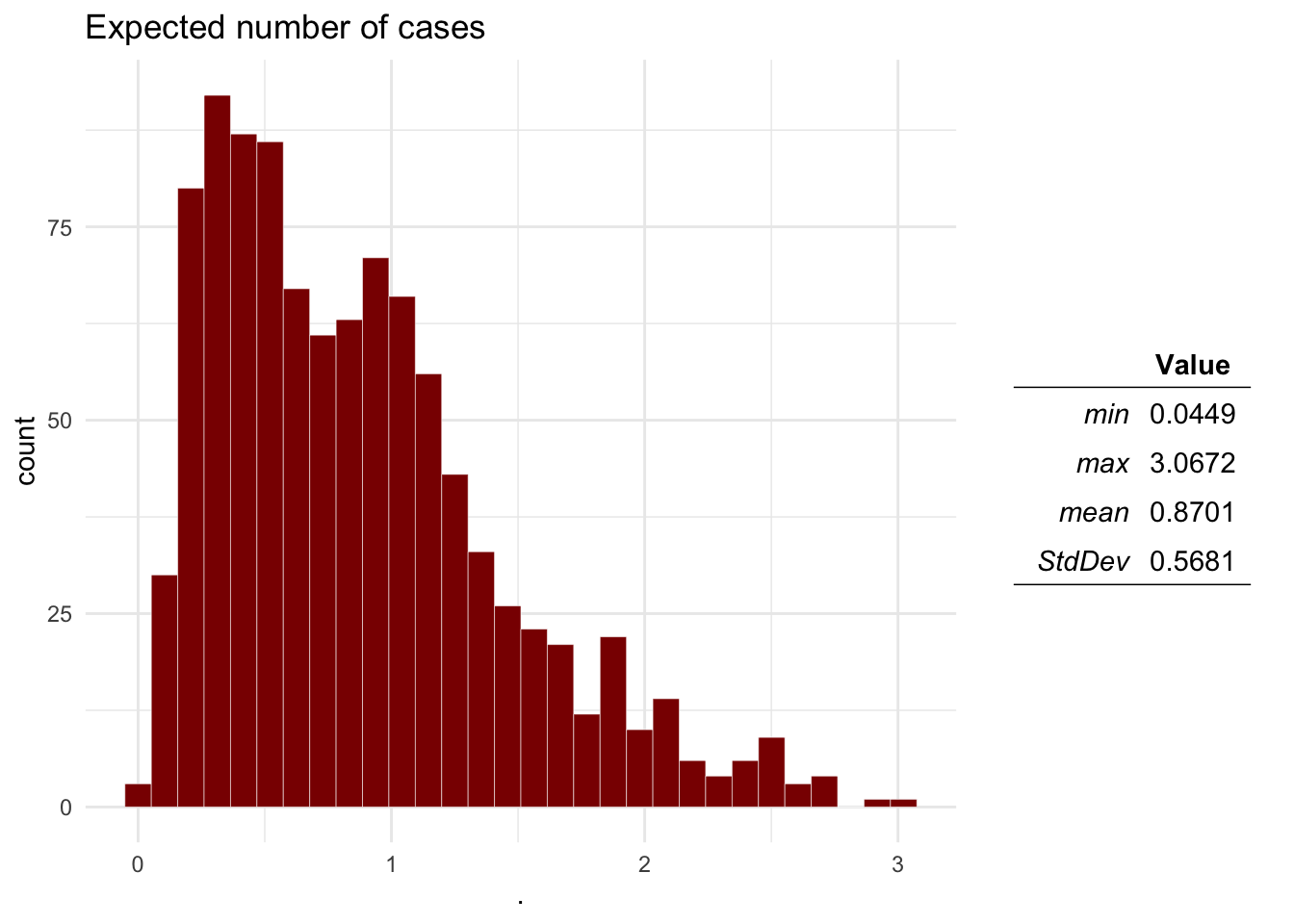 ra_plotDist(Mo$E, main = 'Expected number of cases') # Expected number of transmission events